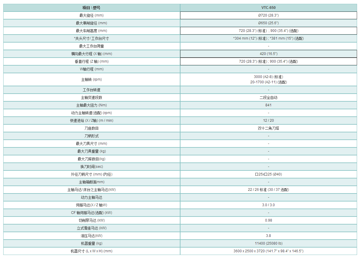 ● 以上表列所有规格以发那科控制系统为准
