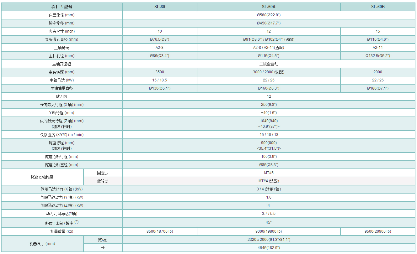 • 以上表列所有规格以发那科控制系统及12角刀塔为准。